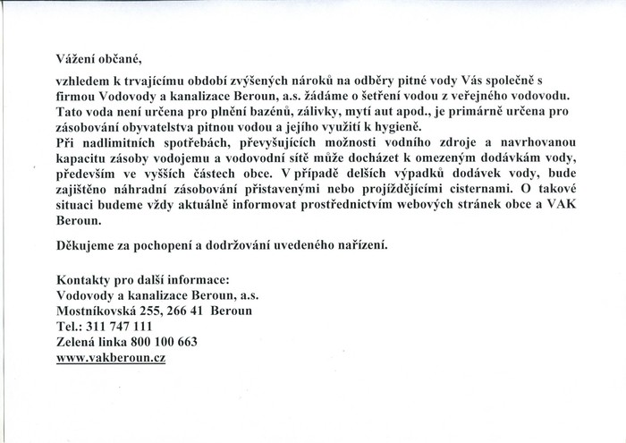 Úvod > O obci > Aktuality > Informace VaK Beroun k šetření s pitnou vodou